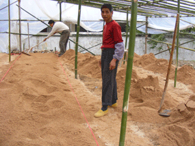 今年2月初,公司领导一行人在金鸡岩实业有限公司董事长黄世健的带领下到石坎檀香种植基地实地考察。随行的也包括中科院华南植物园檀香专家马国华博士。黄世健透露满山的桉树已经开始规划砍伐以准备4月份逐步种上檀香树。与此同时,第一阶段的育苗沙埔也正如火如荼地进行中。