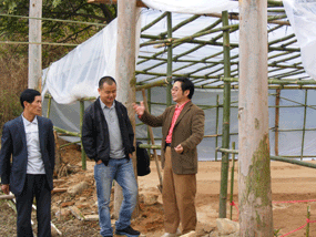 黄总(左一)与胡董(左二)及马博士(右二)在石坎种植基地留影。