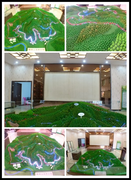 此沙盘展示的仅是檀香山的第一期檀香种植项目,即座落在龙颈镇的2500亩檀香森林公园。此项目目前已完成1000亩约6万棵檀香树的种植,以及许多基础设施如公路、管理处、蓄水池、堆肥屋等。并将在2013年完成整个首期计划,估计种植15万-20万棵檀香树。